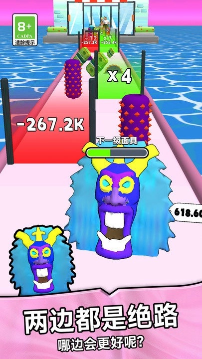 面具進(jìn)化是一款融合了面具制作與市場競爭元素的刺激跑酷小游戲。在游戲中,你需要巧妙挑選各類道具、精心修飾面具,力求打造出完美的作品來吸引收藏家的關(guān)注,最終讓這些面具能被珍藏于博物館之中。隨著游戲進(jìn)程的推進(jìn),通過不斷實現(xiàn)面具的進(jìn)化,做出正確決策并規(guī)避錯誤操作,你就能逐步提升面具的價值,贏得更多收益,同時避免在競價環(huán)節(jié)中被誤導(dǎo)。