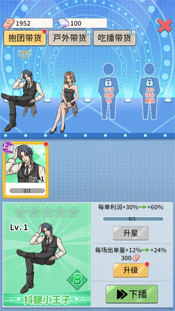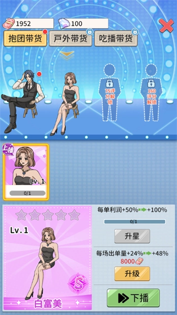 3、玩家和主播都有升級系統(tǒng),升級級別可以解鎖更多功能和產(chǎn)品,增加收入,這是非常有意思的模擬游戲。