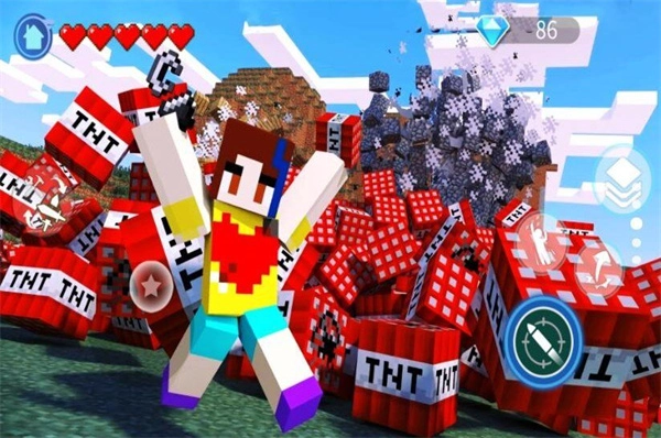 在《TNT自由世界》這款游戲里,玩家能夠借助各式各樣的TNT炸彈去破壞地形、建筑物,乃至將整座山脈都摧毀。而除了TNT炸彈之外,大家還可以運(yùn)用多種工具與方塊,親手打造出專屬于自己的世界。