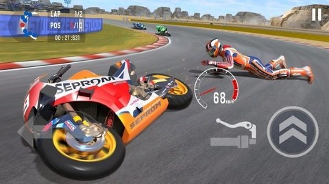 2、精細(xì)的畫面表現(xiàn):3D視覺效果出色,摩托車的每一個(gè)細(xì)節(jié)和賽道的環(huán)境都栩栩如生。