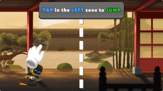1、指尖點(diǎn)擊屏幕即可輕松的操控忍者沖刺與戰(zhàn)斗。
