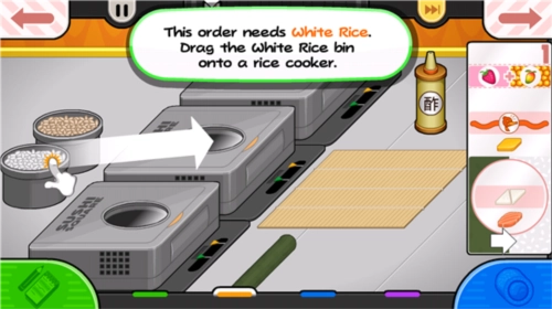 7、接下來玩家可以依據(jù)教程提示,開始制作壽司;