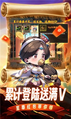 2、開(kāi)服狂歡活動(dòng)開(kāi)啟,每日登錄即可領(lǐng)取百連抽、滿級(jí)VIP及紅包碎片福利。