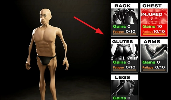 4、右側(cè)則是會(huì)顯示角色多個(gè)部位的肌肉情況,需要不斷提升。