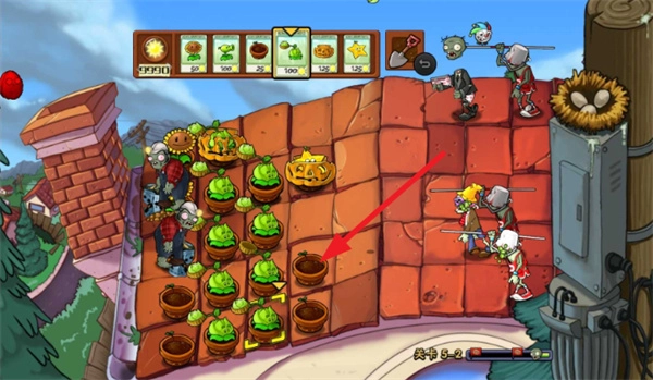 4、并且游戲中還有屋頂關卡,這個關卡的植物需要種植的花盆中。