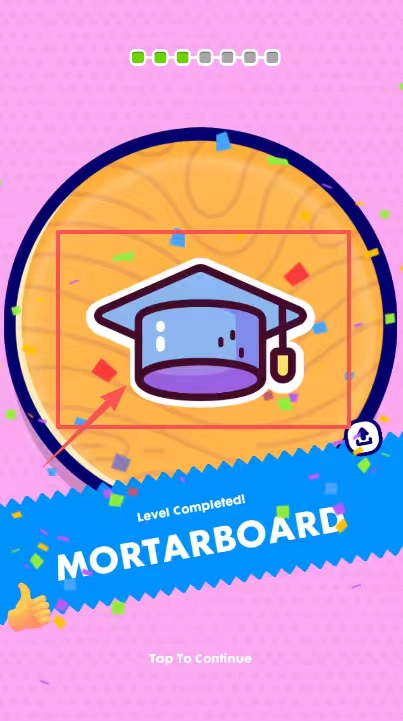 4、橙黃圓里藍(lán)色學(xué)士帽被框,點Tap To Continue完成這關(guān)進(jìn)入新關(guān)卡。