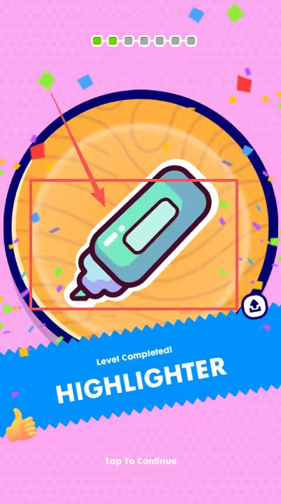 2、看到橙色圈里藍(lán)綠熒光筆,點下方Tap To Continue進(jìn)入下一關(guān)。