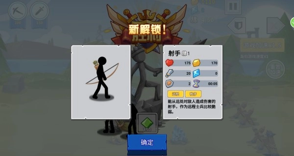 1、金幣達(dá)到一定的數(shù)量后就可以招募更多戰(zhàn)斗兵種比如:劍士,弓箭手,法師等等;