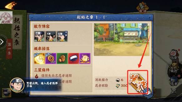 8、點擊開始的按鈕對需要上陣的鳴人進行選擇