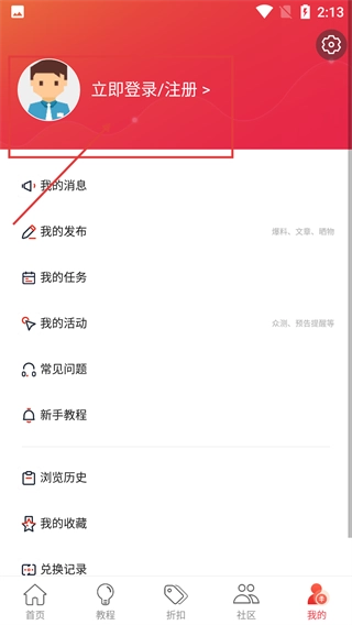 2、在個(gè)人中心頁(yè)面,點(diǎn)擊【立即登錄/注冊(cè)】選項(xiàng),進(jìn)入注冊(cè)或登錄頁(yè)面。