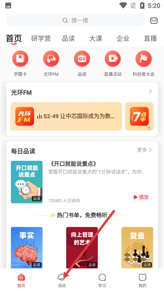 1.平臺(tái)上新研學(xué)營共學(xué)板塊,光環(huán)研學(xué)營,與你研討共學(xué)、共同成長;