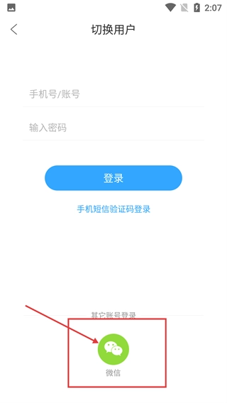 4、進入【切換用戶】頁面后,選擇【微信】賬號登錄。