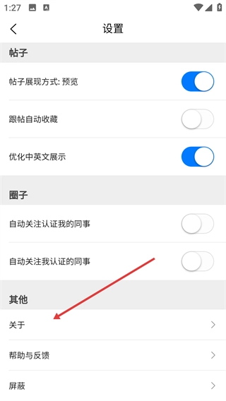 2、在設置界面點擊【關于】選項,進入關于頁面。