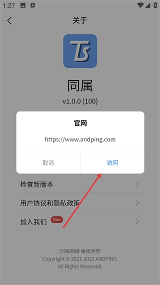 4、在彈出的窗口中點擊【訪問】按鈕,進入同屬。