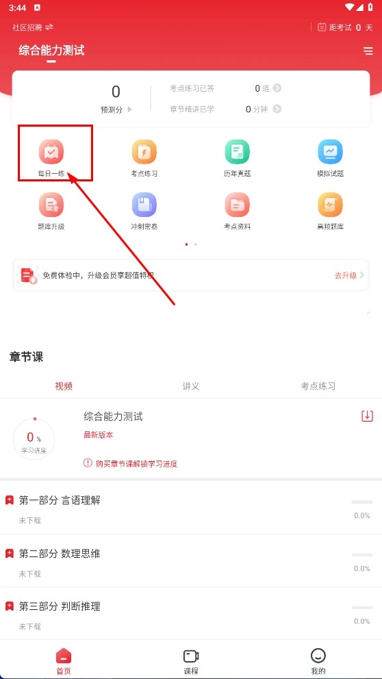 1、點擊【每日一練】功能按鈕,即可進入每日一練頁面。