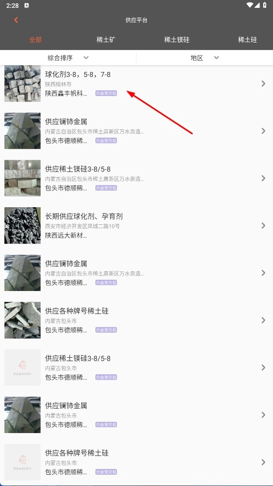 3、在供應(yīng)平臺(tái),選擇目標(biāo)稀土產(chǎn)品條目,進(jìn)入詳情頁(yè)面。