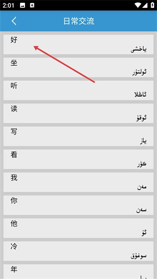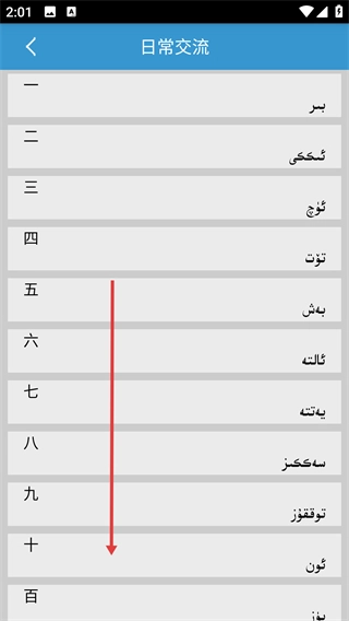 2、在日常交流詞匯列表頁面向上滑動屏幕,瀏覽詞匯。