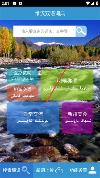 1、在維漢雙語詞典首頁找到并點擊【日常交流】選項,即可進入日常交流詞匯的列表頁面。