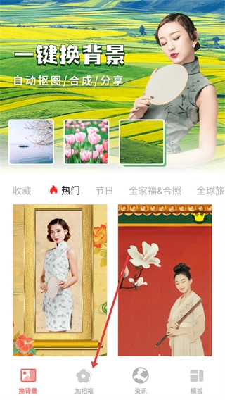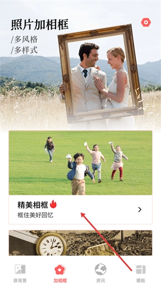 1、點(diǎn)擊【加相框】選項(xiàng),進(jìn)入照片添加相框的界面。