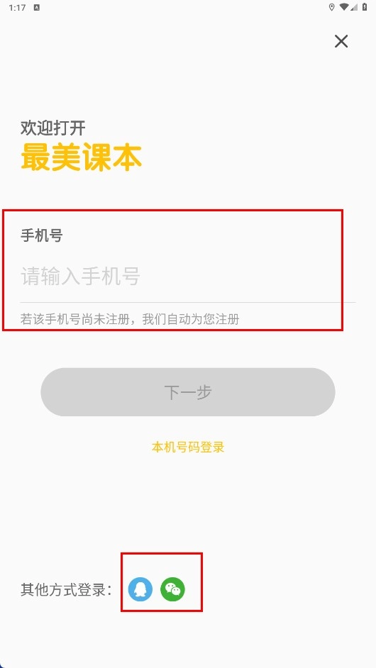 3、在登錄頁面,可輸入手機(jī)號或選擇其他方式(如微信、QQ)登錄。
