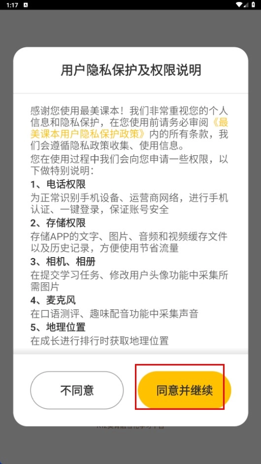 1、點擊【同意并繼續(xù)】功能按鈕,即可進(jìn)入最美課本的相關(guān)頁面。