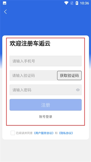 3、在登錄界面中,點(diǎn)擊【賬號注冊】選項卡,可切換至注冊頁面,支持通過手機(jī)號完成賬號注冊。