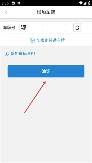 2、在增加車(chē)輛界面點(diǎn)擊【切換到新能源車(chē)牌】選項(xiàng),切換車(chē)牌類(lèi)型。