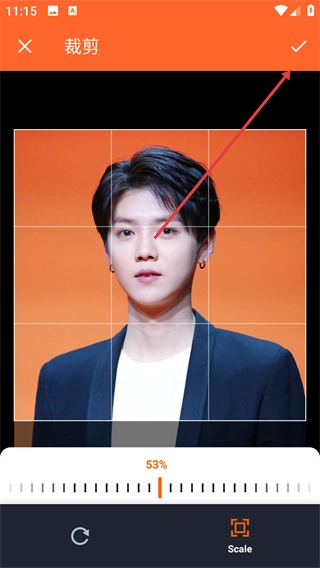 3、在裁剪界面調(diào)整圖片裁剪區(qū)域,點(diǎn)擊確認(rèn)按鈕完成裁剪。