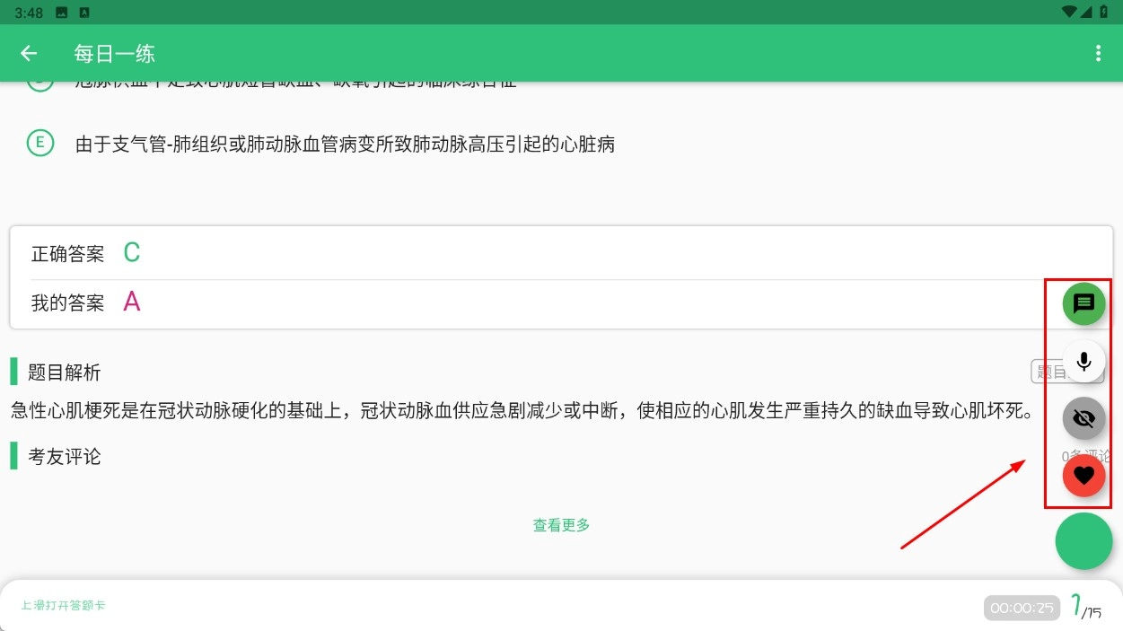3、在題目練習(xí)頁,選擇答案后,可查看正確答案和題目解析。