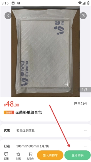 3、在搜索結(jié)果中選擇【無(wú)菌墊單組合包】商品,進(jìn)入商品詳情頁(yè)面。