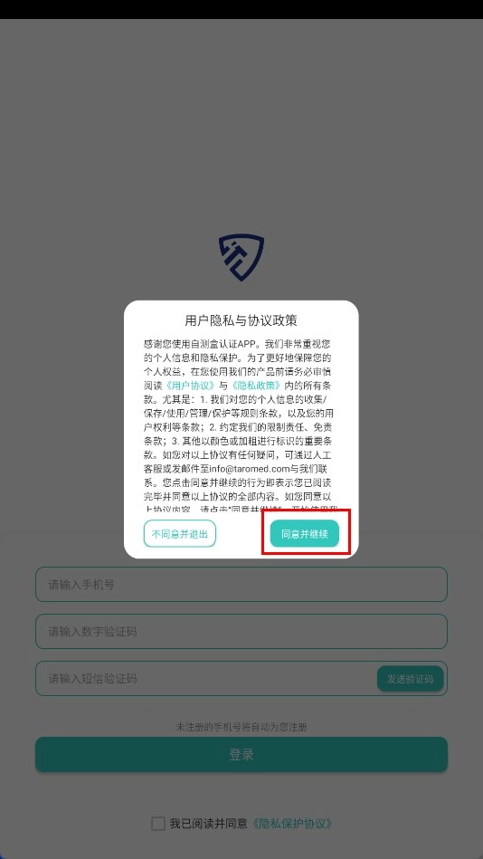 1、點(diǎn)擊【同意并繼續(xù)】功能按鈕,以確認(rèn)用戶隱私與協(xié)議政策。