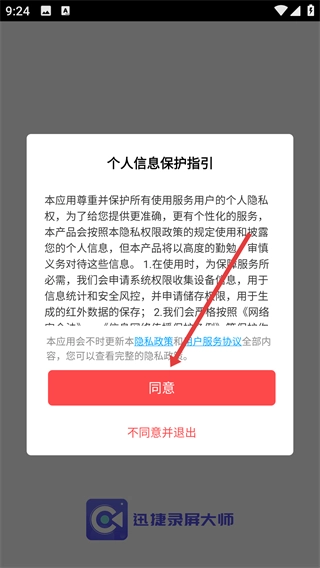 1、點(diǎn)擊【同意】按鈕,確認(rèn)已了解并同意【個(gè)人信息保護(hù)指引】,隨后進(jìn)入【迅捷錄屏大師】的主界面。