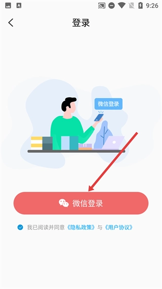 4、勾選同意協(xié)議后,點(diǎn)擊【微信登錄】按鈕,完成賬號(hào)登錄操作。