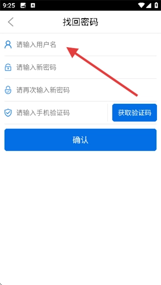 2、在找回密碼界面輸入用戶名。