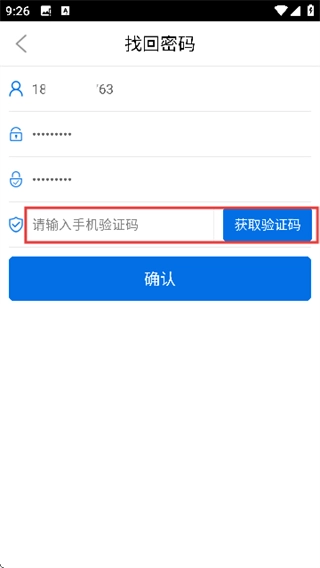 3、輸入新密碼并再次確認(rèn),然后點(diǎn)擊【獲取驗(yàn)證碼】并輸入手機(jī)驗(yàn)證碼。