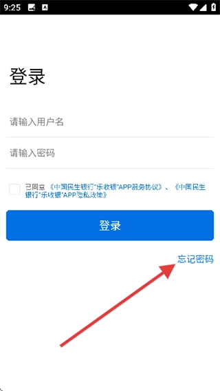 1、點(diǎn)擊【忘記密碼】選項(xiàng),即可進(jìn)入密碼找回界面。