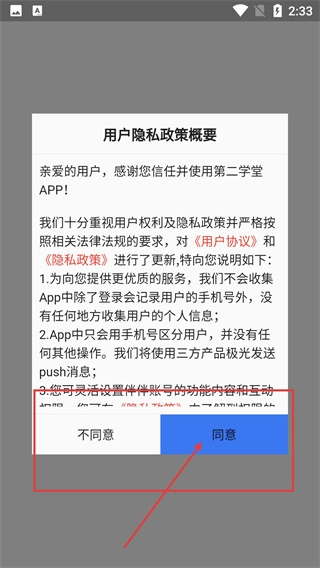 1、在【用戶隱私政策概要】界面,點擊【同意】按鈕,以確認接受隱私政策。