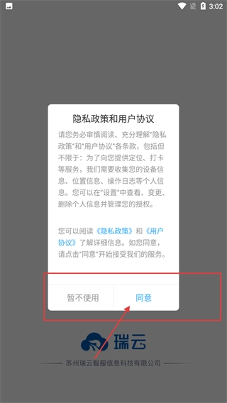 進(jìn)入軟件后,會彈出【隱私政策和用戶協(xié)議】提示框,點(diǎn)擊【同意】按鈕,即可繼續(xù)使用軟件服務(wù)。