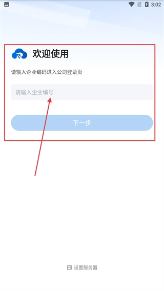 2、進(jìn)入企業(yè)編號輸入界面,在【請輸入企業(yè)編號】輸入框中輸入企業(yè)編號,再點(diǎn)擊【下一步】按鈕,可進(jìn)入公司登錄頁。