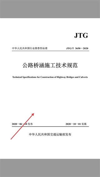 3、點(diǎn)擊具體資料如【公路橋涵施工技術(shù)規(guī)范】,可查看其發(fā)布和實(shí)施時(shí)間、發(fā)布單位等信息。
