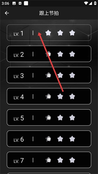 3、進入跟上節(jié)拍頁面后,選擇【Lv.1】關(guān)卡,該關(guān)卡為初始可參與關(guān)卡。