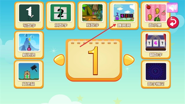 2、點(diǎn)擊數(shù)字“1”,使其向上跳躍。
