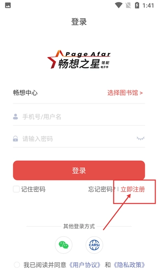 1、在【暢想之星】登錄頁(yè)面,您既可以選擇點(diǎn)擊【立即注冊(cè)】按鈕開啟注冊(cè)流程,也能夠通過(guò)【手機(jī)號(hào)/用戶名】與密碼組合的方式登錄,還可以借助【微信】進(jìn)行登錄操作。
