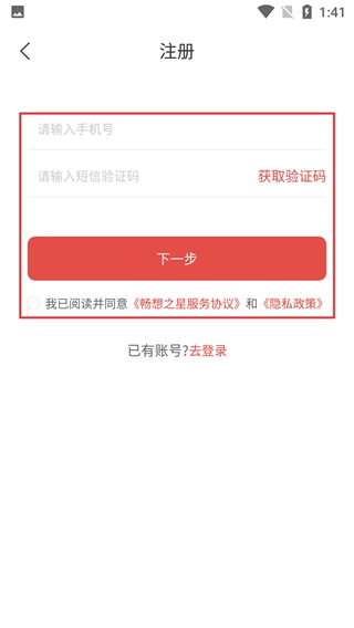 2、進(jìn)入注冊(cè)頁(yè)后,需輸入【手機(jī)號(hào)】,點(diǎn)擊【獲取驗(yàn)證碼】并填寫,點(diǎn)擊【下一步】繼續(xù)注冊(cè)。