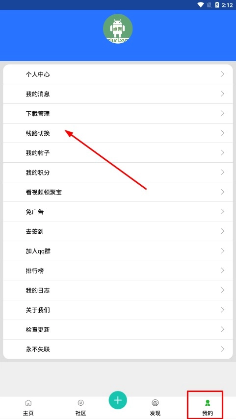 3、在個(gè)人頁面中點(diǎn)擊【線路切換-功能選項(xiàng)】,查看可切換的線路列表。