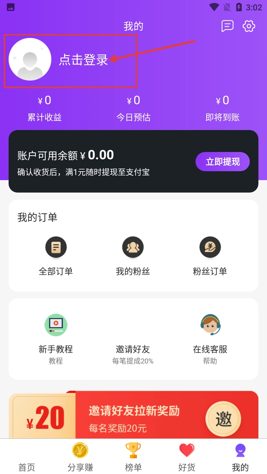 2、在個(gè)人中心界面,點(diǎn)擊【點(diǎn)擊登錄】區(qū)域,可進(jìn)入登錄選擇界面。