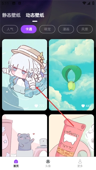 2、在動態(tài)壁紙分類界面點(diǎn)擊【卡通】分類,篩選出卡通類動態(tài)壁紙。