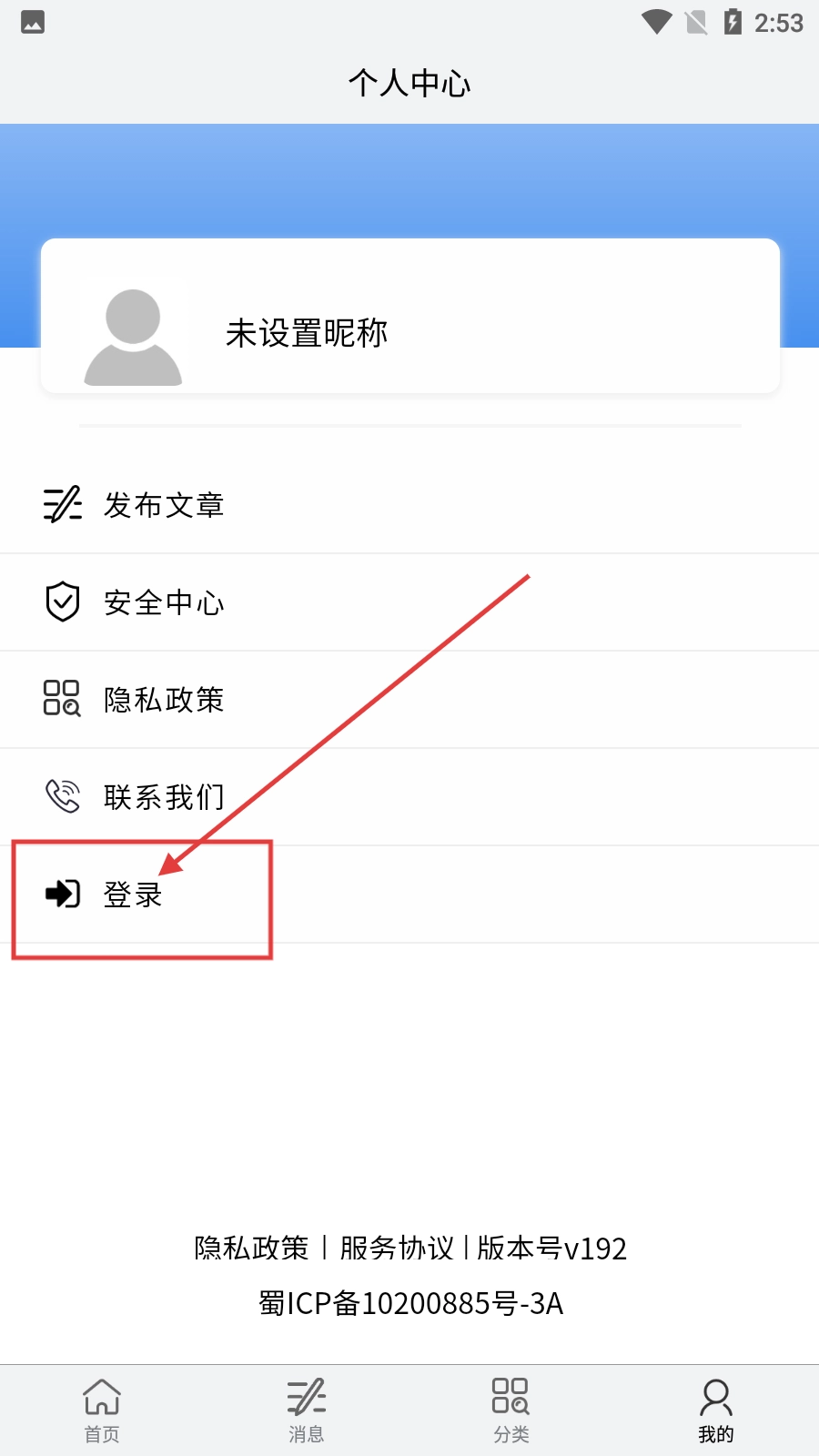 2、在個人中心界面,點擊【登錄】選項,可進入登錄流程。