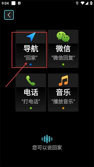2、在語音交互界面選擇【導(dǎo)航-回家】選項(xiàng),可進(jìn)入常用地址設(shè)置環(huán)節(jié)。
