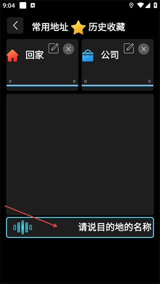 3、在常用地址界面,可通過語音說出目的地名稱來設(shè)置或選擇地址。